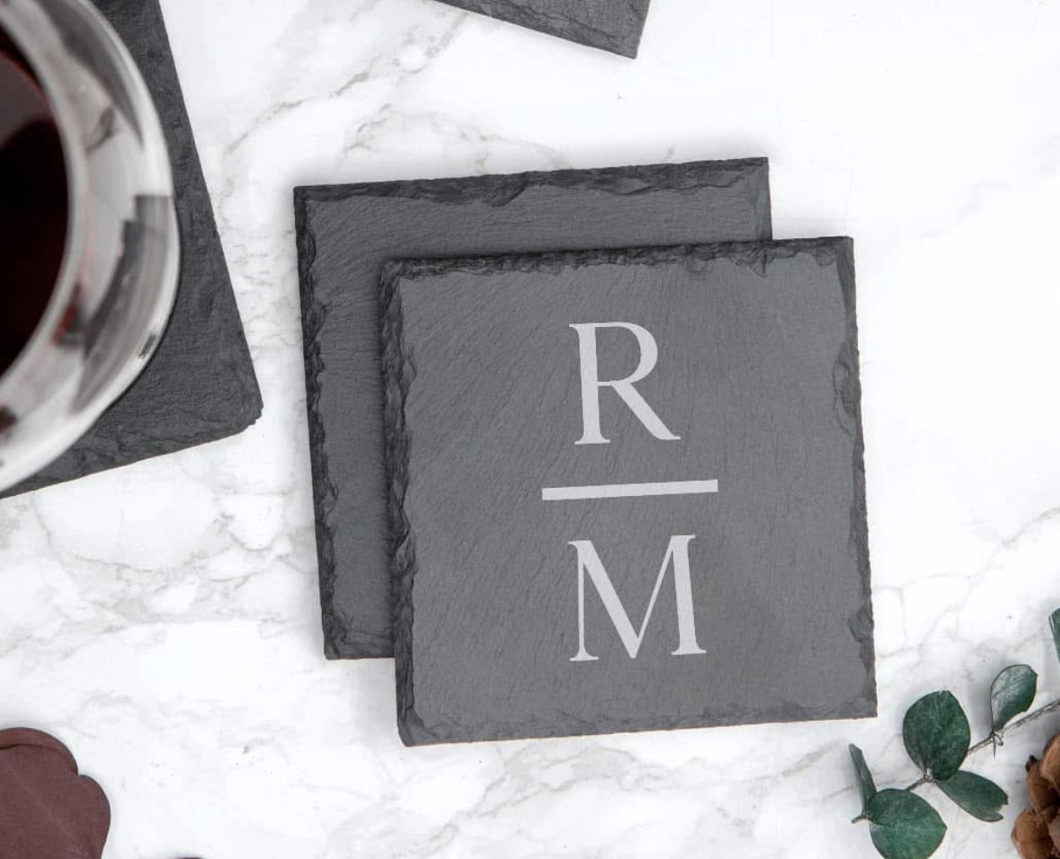 Set of 4 personalized slate coasters.